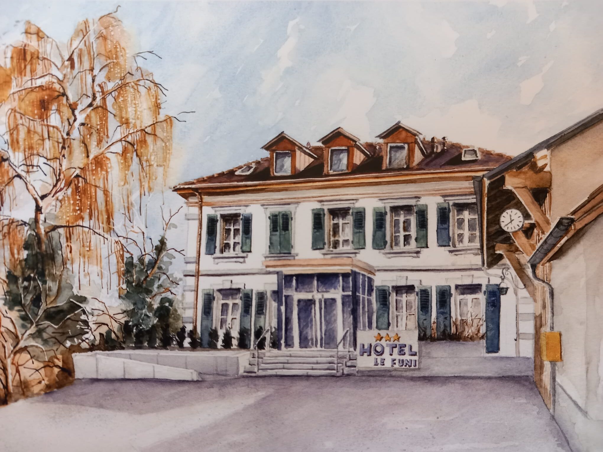 Zo omstreeks 14.00 uur kom ik al aan – helemaal onder de bagger – bij Hotel le Funi, gebouwd eind negentiende eeuw, direct naast de funicular (de lift naar het treinstation beneden) die gelijk met het hotel werd gebouwd.